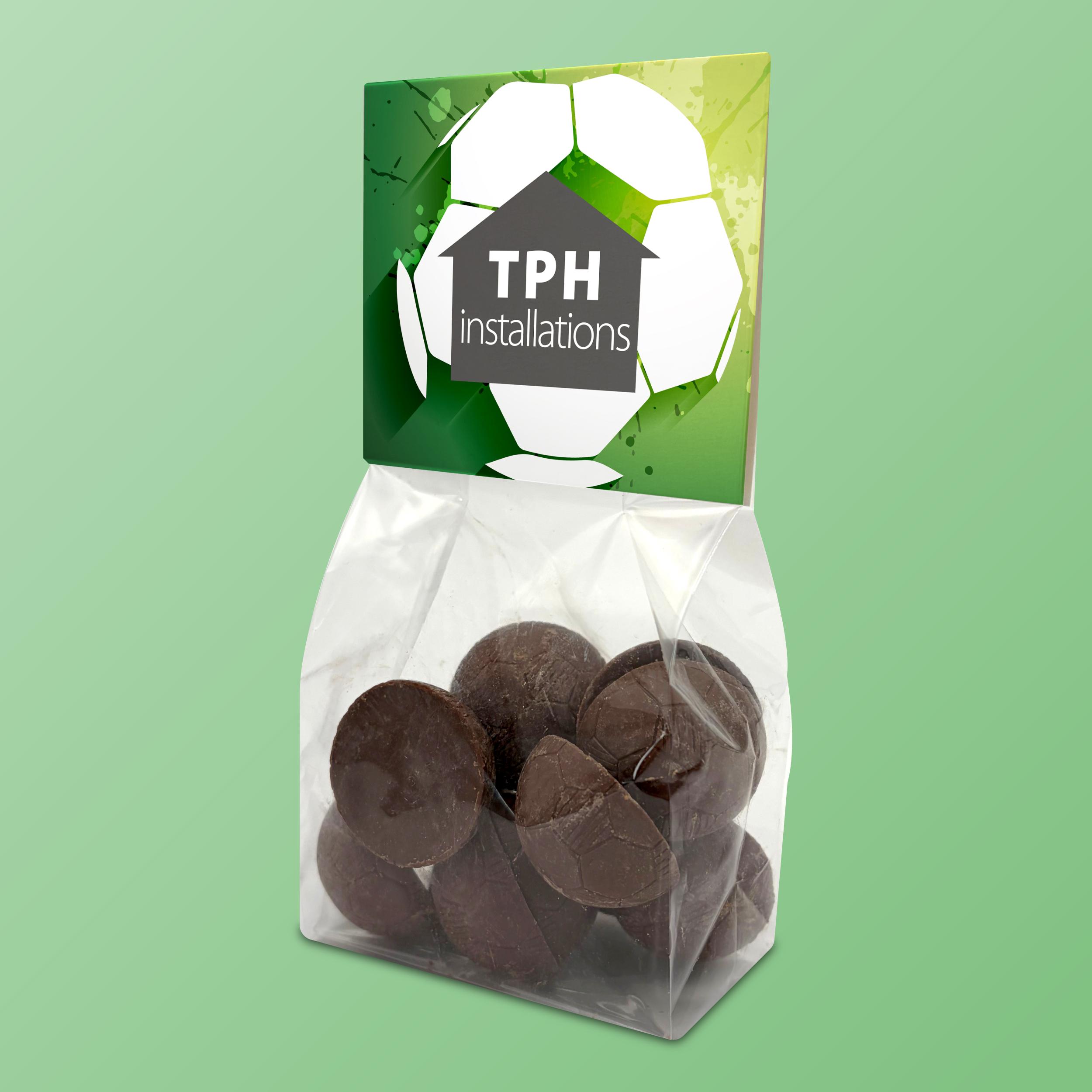 Make a lasting impression with our World Cup Milk Chocolate Header Bags – the perfect combination of eco-conscious packaging and irresistible chocolate treats. Each flat-bottomed bag is made from compostable plant starches, offering a sustainable solution without compromising on presentation or quality.